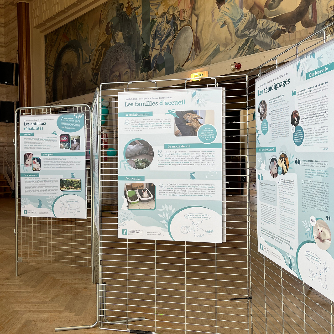 White Rabbit is an association that has been working since 2014 for the rehabilitation of small laboratory animals, and for which I am a volunteer graphic designer.