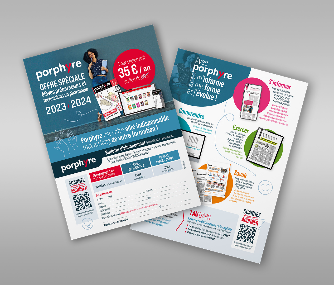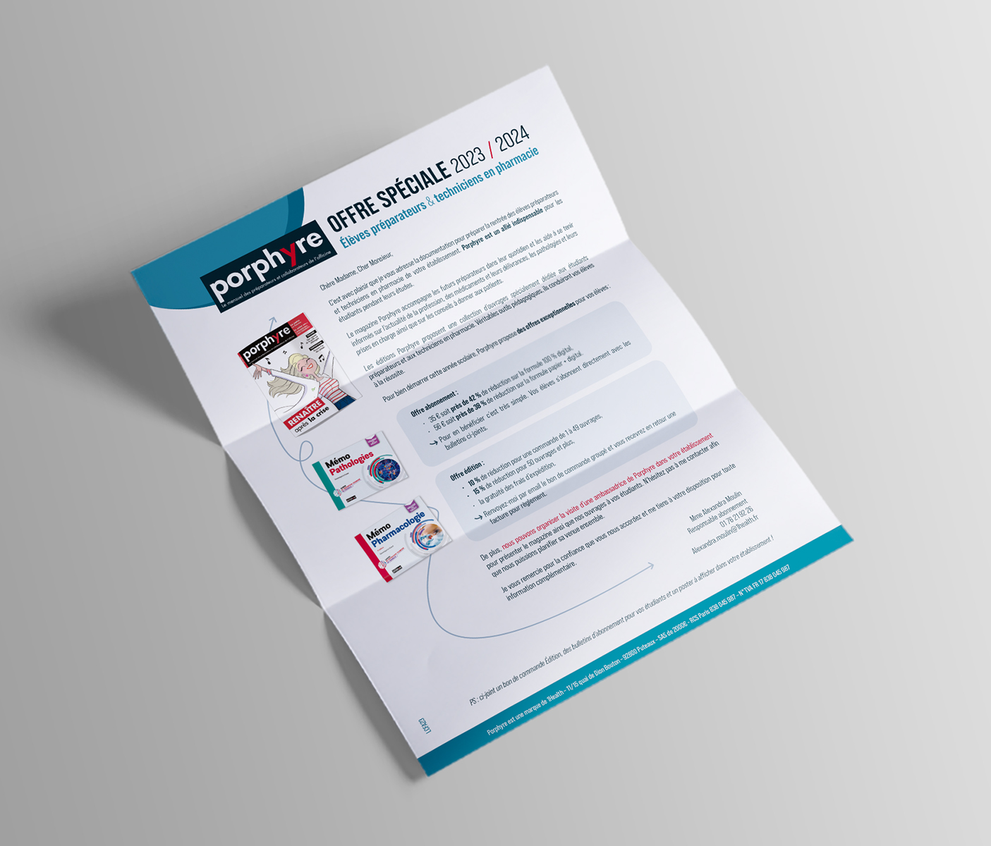 Porphyre is a monthly magazine published by 1Health, a subsidiary of the Europa group, and dedicated to pharmacy assistants and collaborators.